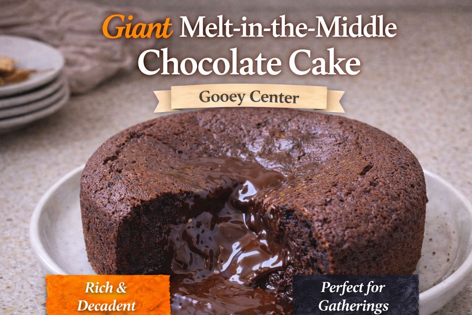 Serve Giant Melt-in-the-Middle Chocolate Cake warm with vanilla ice cream, fresh berries, or whipped cream. A drizzle of extra chocolate sauce or caramel makes it even more indulgent. It’s perfect as a centerpiece dessert for special occasions.