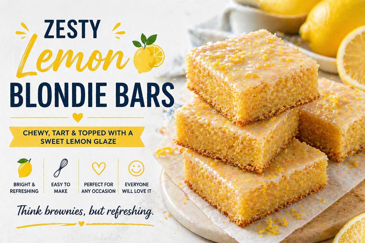These Zesty Lemon Blondie Bars are the perfect mix of chewy, buttery, and refreshing flavors. With their bright lemon taste and soft texture, they offer a delicious twist on traditional desserts. Easy to make and impossible to resist, this recipe is perfect for any occasion when you want something sweet, light, and full of flavor.